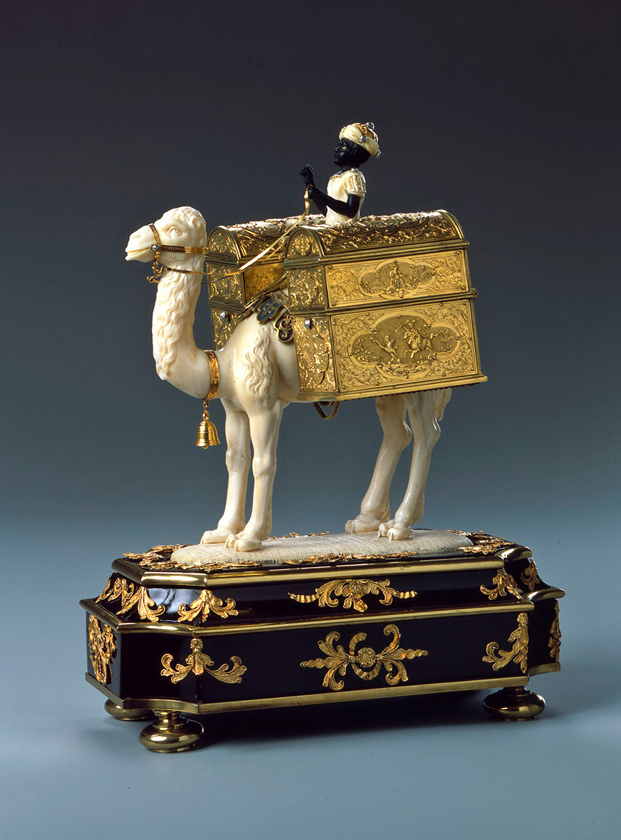 Kamel mit kleinem Mohren auf Schildpattkasten